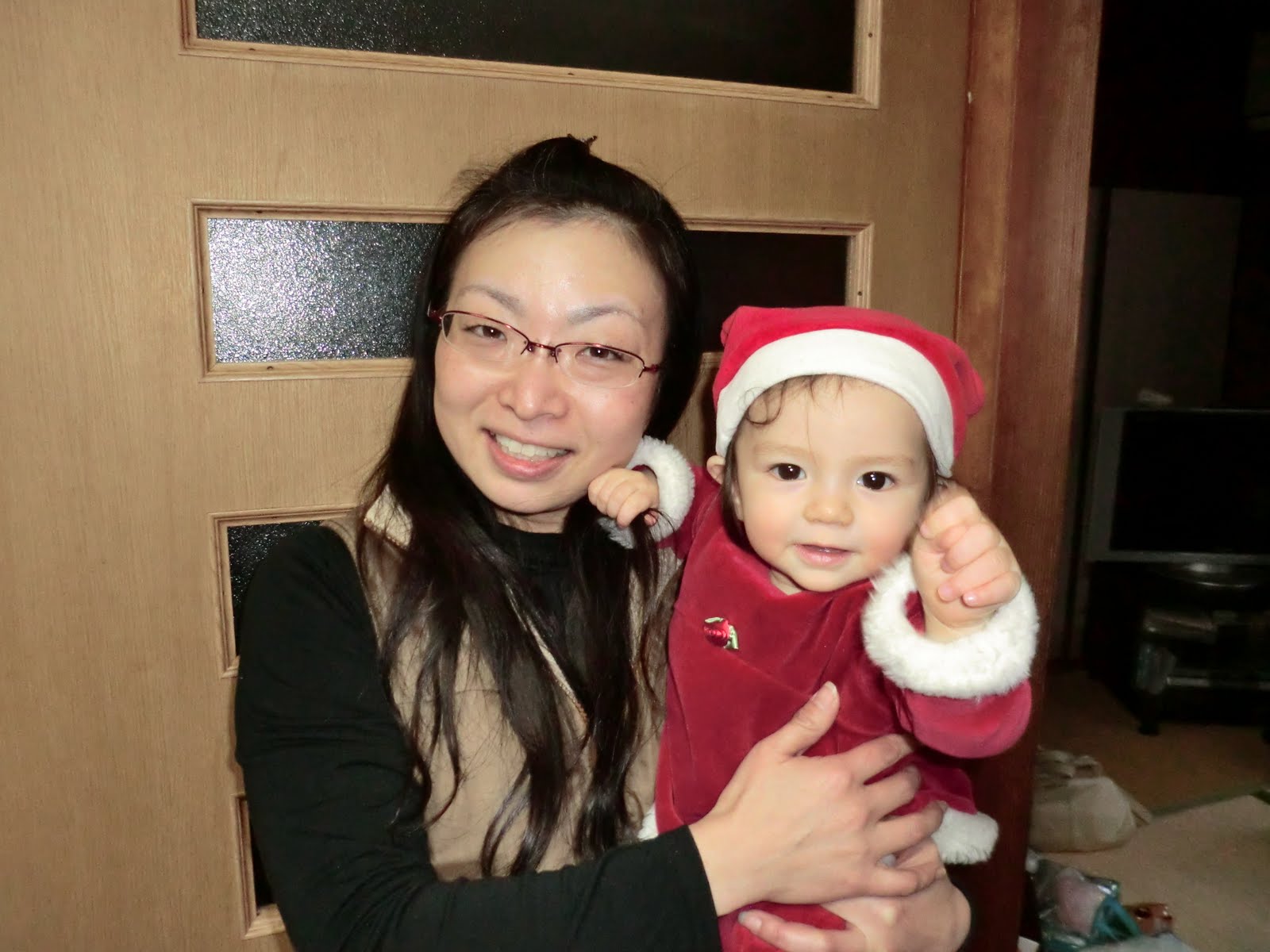 One day, Jason hosted a Christmas party for his students; I played Santa Claus and freaked Amane out.